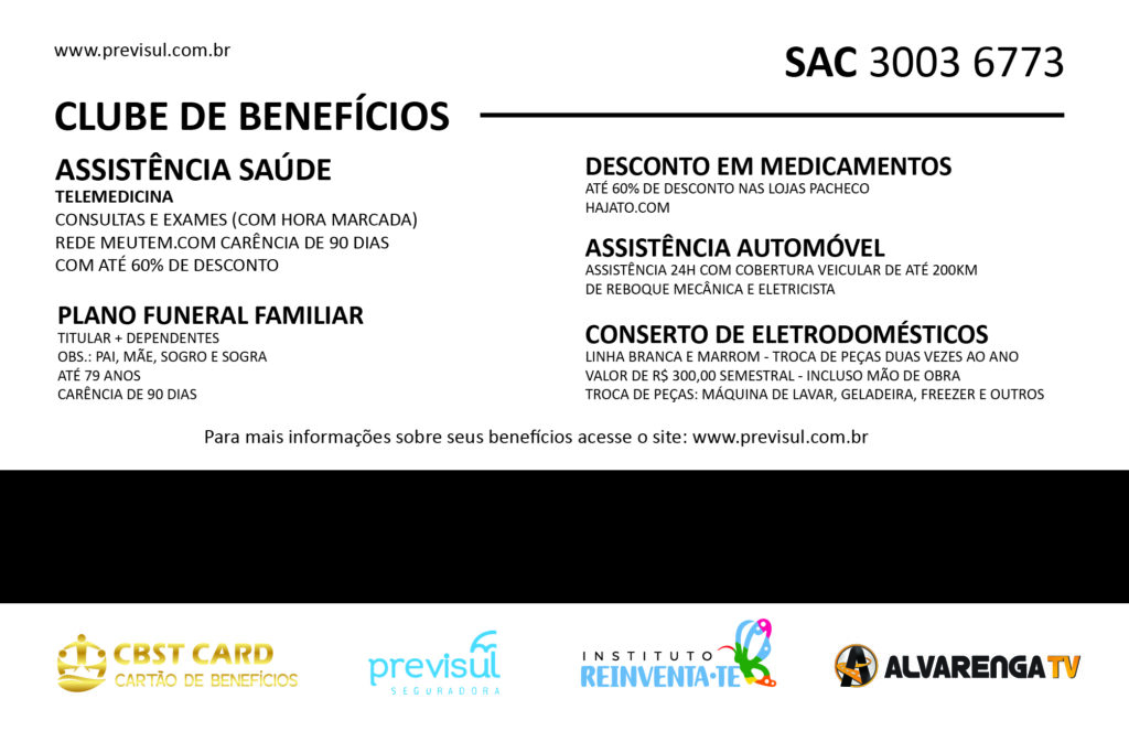 Com o Propósito de democratizar o acesso a saúde, a Alvarenga TV, em parceria com o Instituto Reiventate, CBST Card e Previsul está com mais uma novidade.